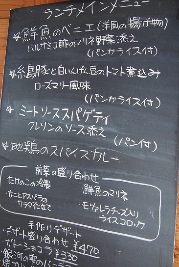 各ランチを選んで、メインを右の黒板の中からお好みで選ぶ感じです。