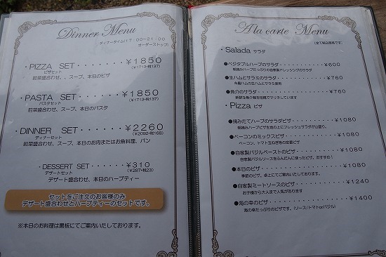 ハーブガーデン プティール倶楽部のランチメニューです。