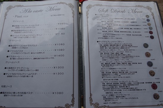 パスタ(PAST)やハーブティーのメニューはこちらです。