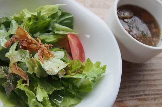 リーズナブルな糸島ランチでも満足できそうですけど、せっかく来たので、ちょっと贅沢にデザートランチにしました。まずはサラダとスープです。スープは玉ねぎの甘みがすごく出ていて、美味しかったです。