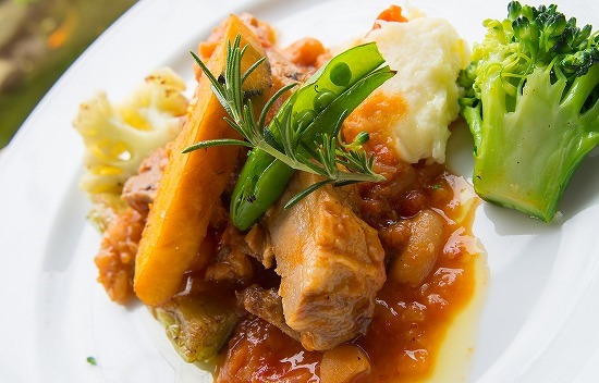 ママは「糸島豚と白いんげん豆のトマト煮込み」です。これ豚さんがトロトロで美味しかったですよ。