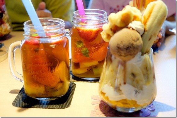 フルーツがふんだんに入ったサイダーやフルーツティーが頂けます。