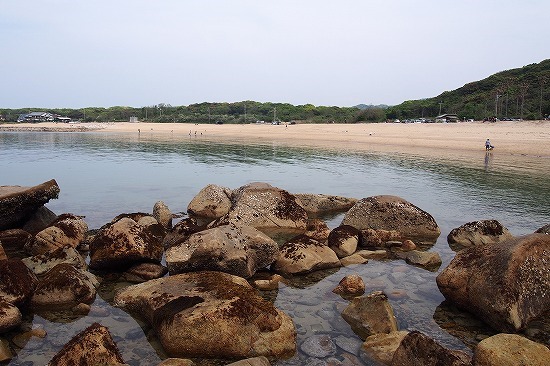 これは4月の下旬ですが、大潮でかなり水が引いてました。めかぶやアオサらしき物がいっぱい、子供も水に入って遊んでました。お天気もまずまずで、気持よかったです。