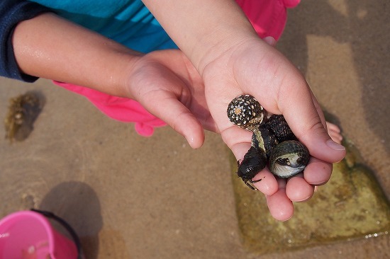 やどかりさんがいっぱい取れました。あっというまに子供の手の中に収まらない数に。もちろんリリースして返してあげましたが、カニさんとかも居て子供は楽しかったそうです。