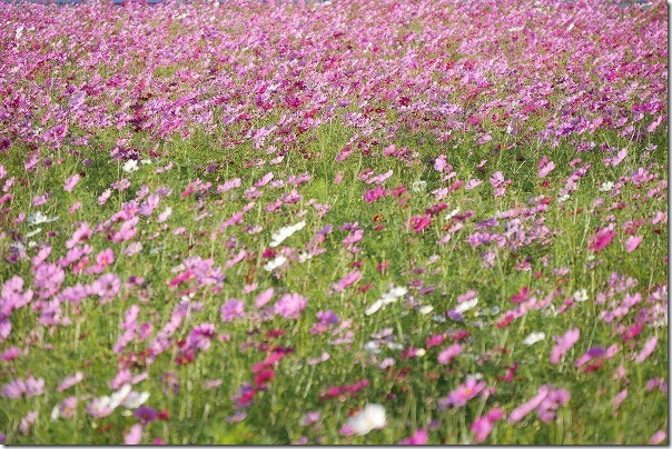 規模的には40万本のコスモスで、すっごく広大な範囲ってほどではないですが、ちょっと散策してみるのに良い広さです。