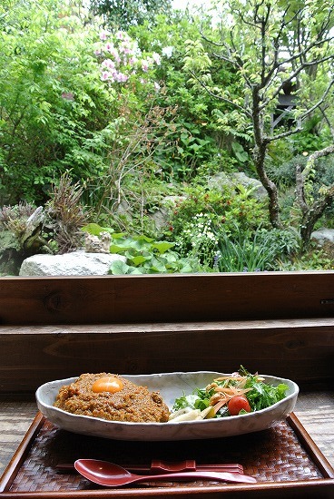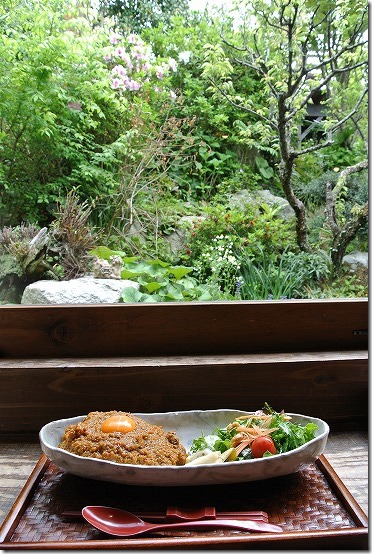 席が空いていたので、庭の見えるテラス沿いの席に座りました。ご覧のような庭を見ながら食べれて良い感じです。とっても良い雰囲気です。
