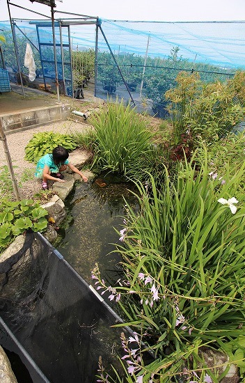 ブルーベリー園への入り口には、小さなメダカの居る池もありましたよ。