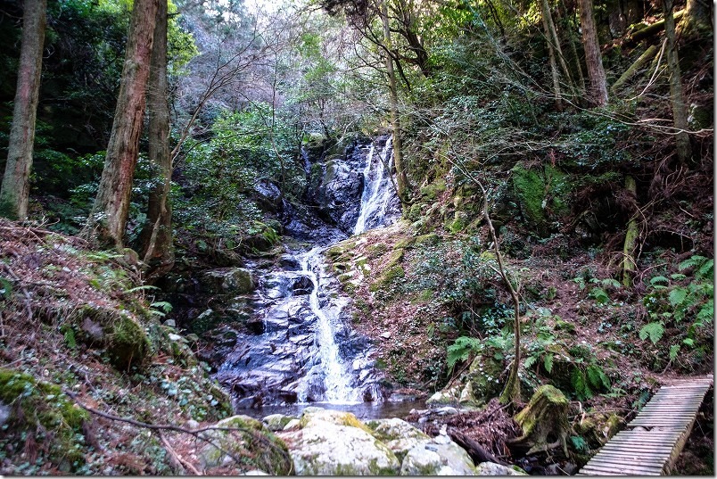 清賀の滝へ到着です。小さい滝ですが2段になっててキレイな滝です。季節が良いときだったら緑もキレイかもですね。