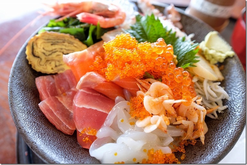 たくさんの種類が食べたい人には良いかなーって海鮮丼です。ぶり、えび、タコ、ほたて、イクラ、とびこ、イカ、鯛、マグロ、サーモンなどが入ってました。