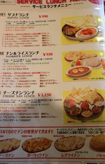 インド料理 サプナのランチメニュー