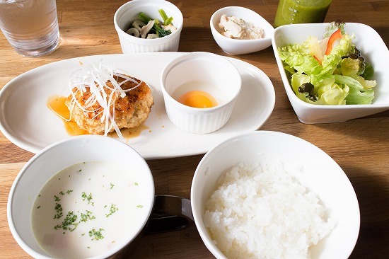 自分は鶏つくねの甘辛焼きと、角切り野菜のミルクスープをセットにて定食を頂きました。