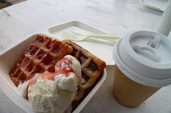 できたてワッフルいかがですか?コーヒー飲みたいし、ちょっと休憩していくことに。