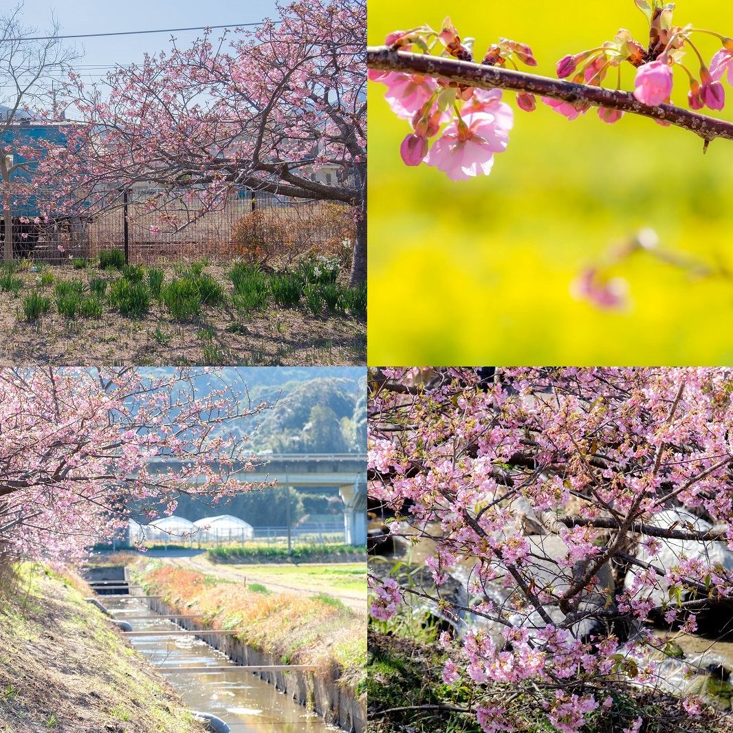2月中旬ですでに見頃の菜の花畑、昨年より1月以上早めに始まった菜の花摘み、そしてこれから見頃を迎える河津桜が素敵な場所ですよ!