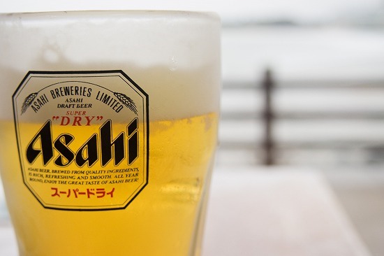 まずは、ビールでお祝い。お店の外に海が見れて良い感じです。