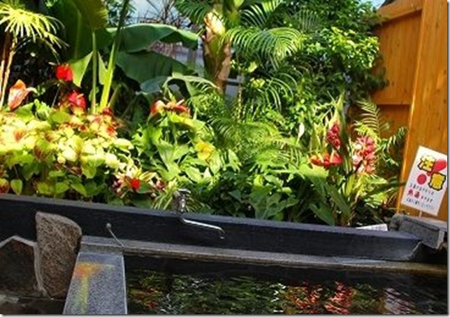 名前のように花屋さんが運営している家族風呂で、花や緑が植え付けられた温泉になっています。