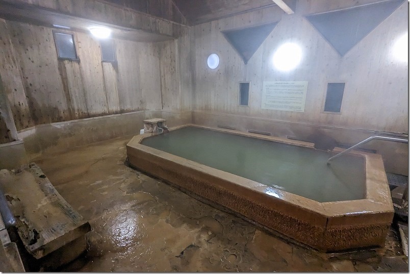 もー一つが暖かめの42度の温泉で、こちらは緑っぽい色のついた炭酸泉です。鉄のまじったような味?もします。